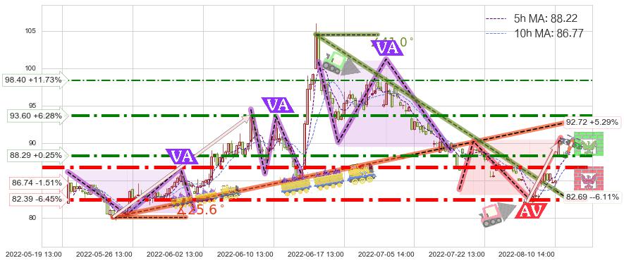 ♘ 阻力价格位93.60,可信任强度73.31%,距离最后交易2022-08-12 14:00形成的收盘价格88.07相差 +6.28%
