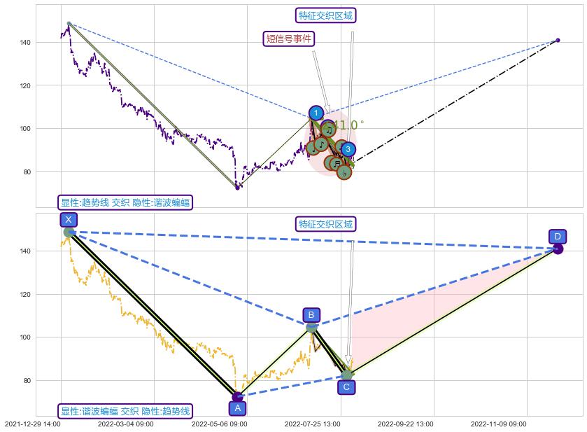 ➢ 趋势线属【短级别信号事件】谐波蝙蝠属【长级别信号事件】长短周期组合信号事件, 短长事件长度比13.26%