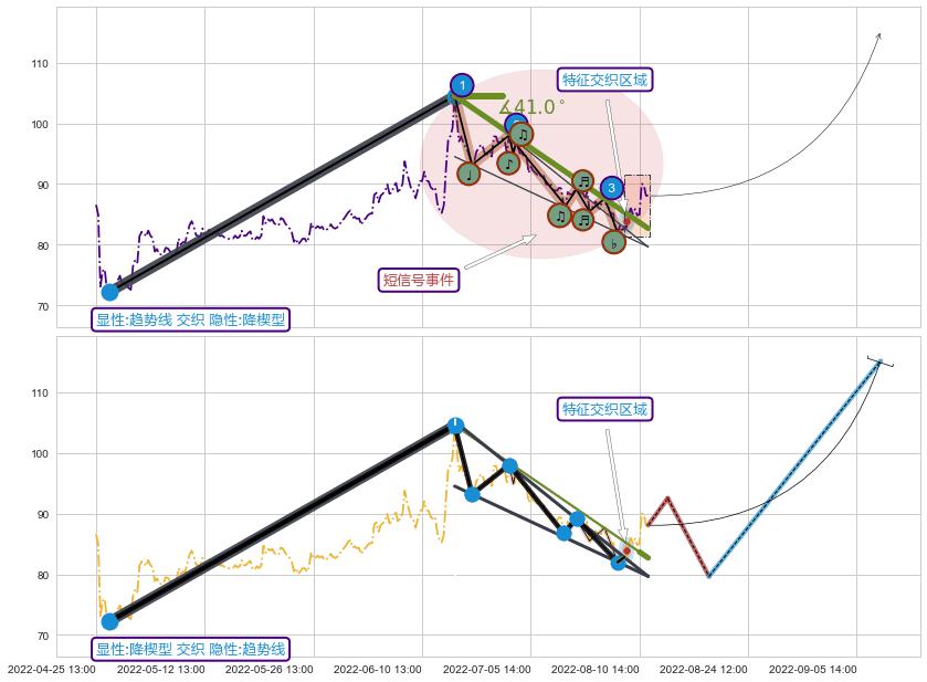➢ 趋势线属【短级别信号事件】降楔型属【长级别信号事件】长短周期组合信号事件, 短长事件长度比34.03%
