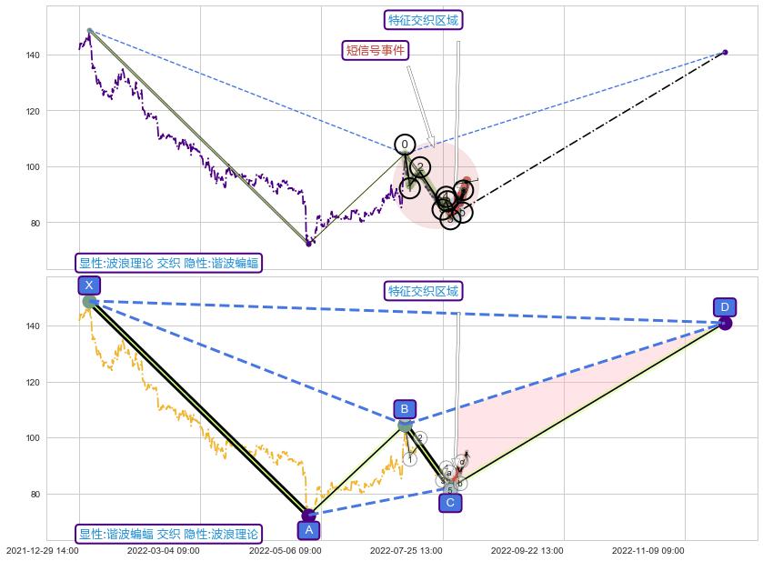➢ 波浪理论属【短级别信号事件】谐波蝙蝠属【长级别信号事件】长短周期组合信号事件, 短长事件长度比14.73%