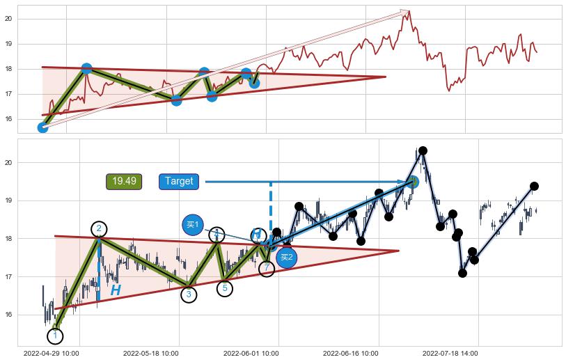 ➣ D点拟合预测价格25.16,距离最后交易收盘价格18.65相差 +34.89%