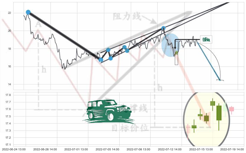 ➢ 收盘价(07-15:14: 17.44 )→回踩→第一根k线高点(07-14:14: 17.54 )