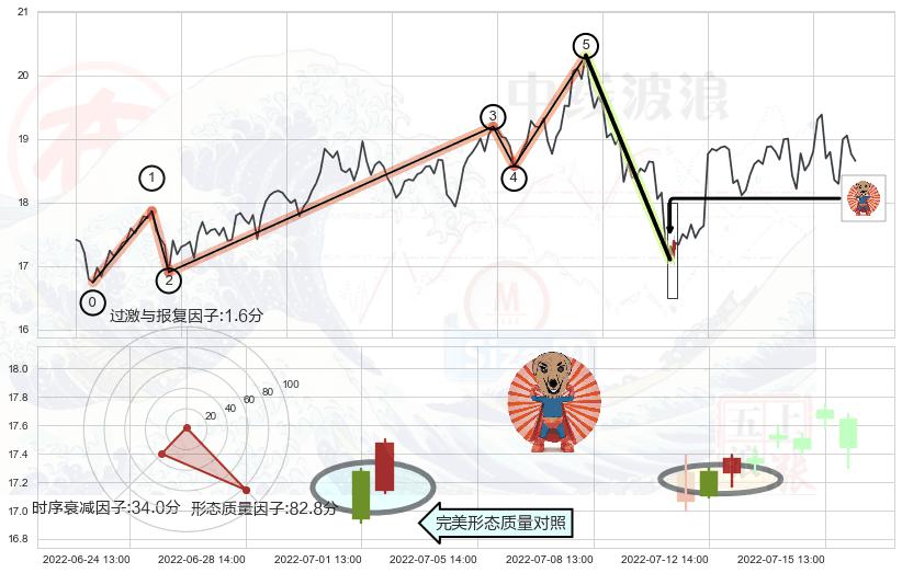 ➢ 🕰 价格走势在2022-07-13 14:00:00至2022-07-15 14:00:00期间形成高档五阴线,残存影响值:-0.91