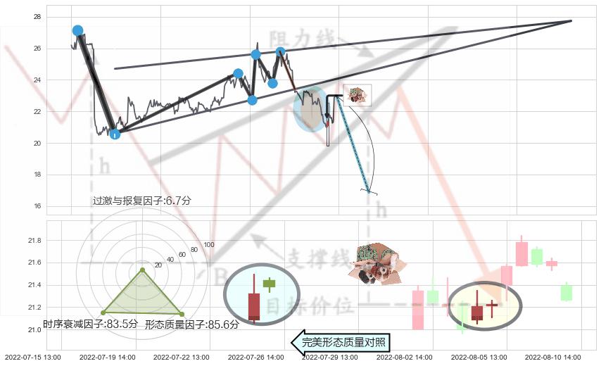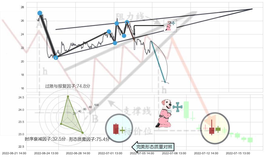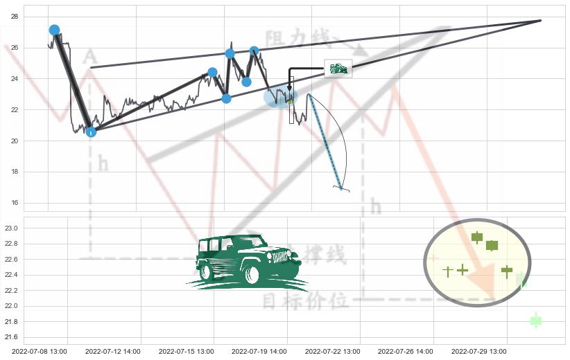 ➢ 高点影线(07-28:13: 22.95 )→回踩→第一根k线低点(07-22:14: 22.90 )