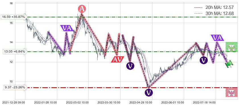 ♘ 阻力价格位13.05,可信任强度53.00%,距离最后交易2022-08-12 14:00形成的收盘价格12.21相差 +6.84%