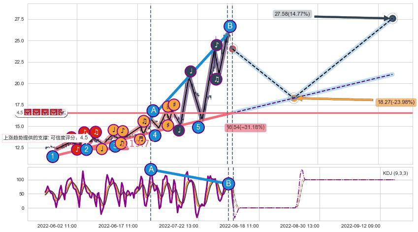 ➢ 预测:2022-08-25 11:00,【小幅回撤】稳定目前上涨趋势的前提下,预测价格:18.27