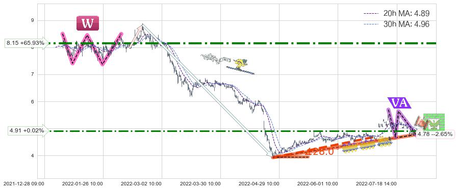 ♘ 阻力价格位4.91,可信任强度59.87%,距离最后交易2022-08-12 14:00形成的收盘价格4.91相差 +0.02%