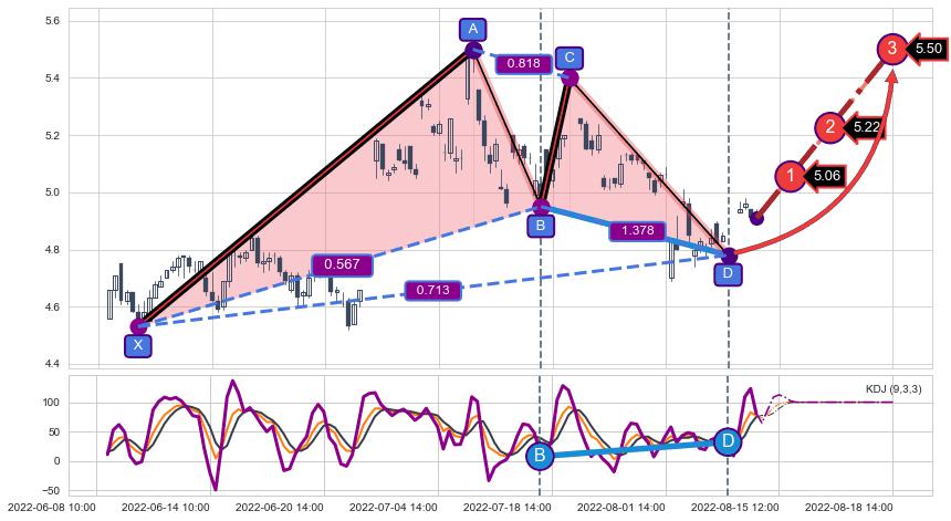 ➢ AI预测: 假定反转如期而至,第❸价格目标位置(08-18:14, 5.50)