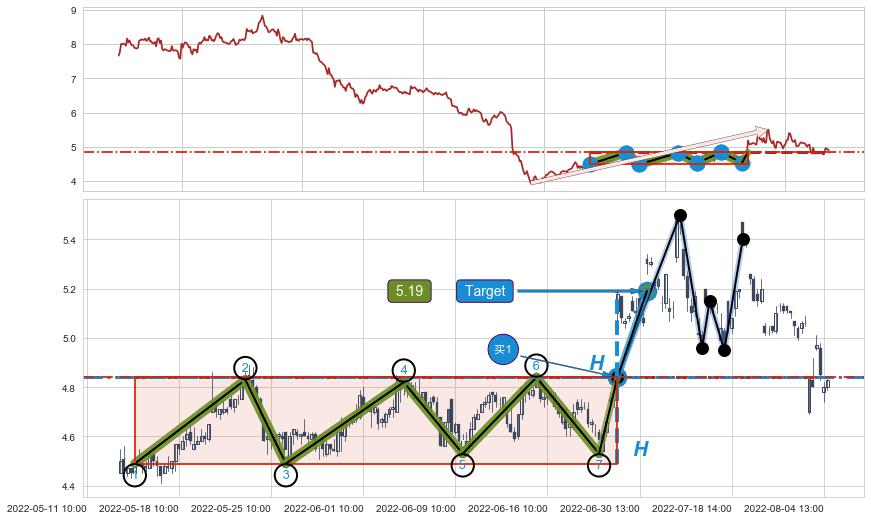 ➢ AI预测: 假定反转如期而至,第❶价格目标位置(08-15:14, 5.06)