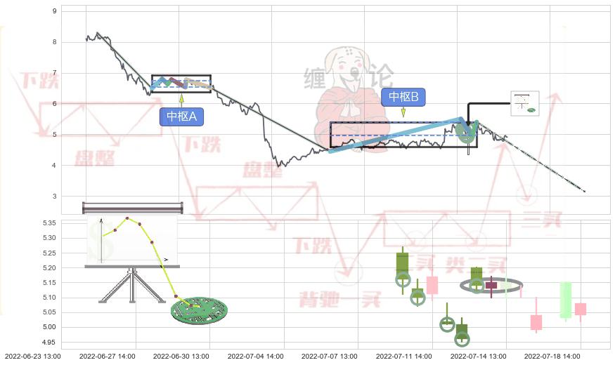 ➢ 缠论中枢点:猜想破位中枢B后持续下拉 → 下跌 → 破位中枢B支撑 → 持续趋势跟踪