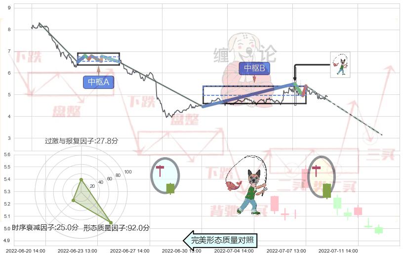 ➢ 下降插入线(坠落线) 🔜 缠论中枢点破位中枢B支撑下拉 综合量化分数:47.37 【中性】