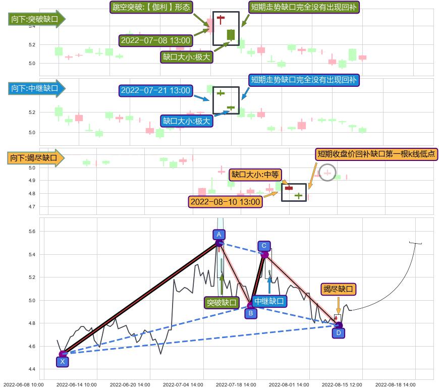 ➢ 2022-08-10 13:00形成:向下跳空【竭尽】缺口