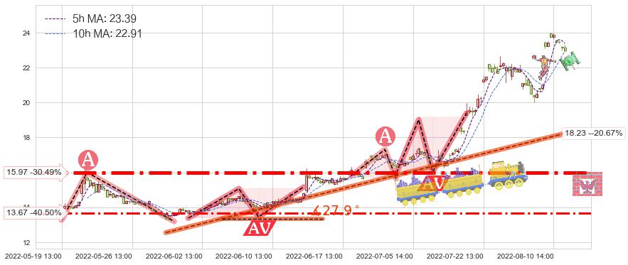 ♞ 5小时均线:23.39,10小时均线:22.91→ 快线>慢线