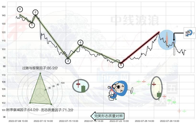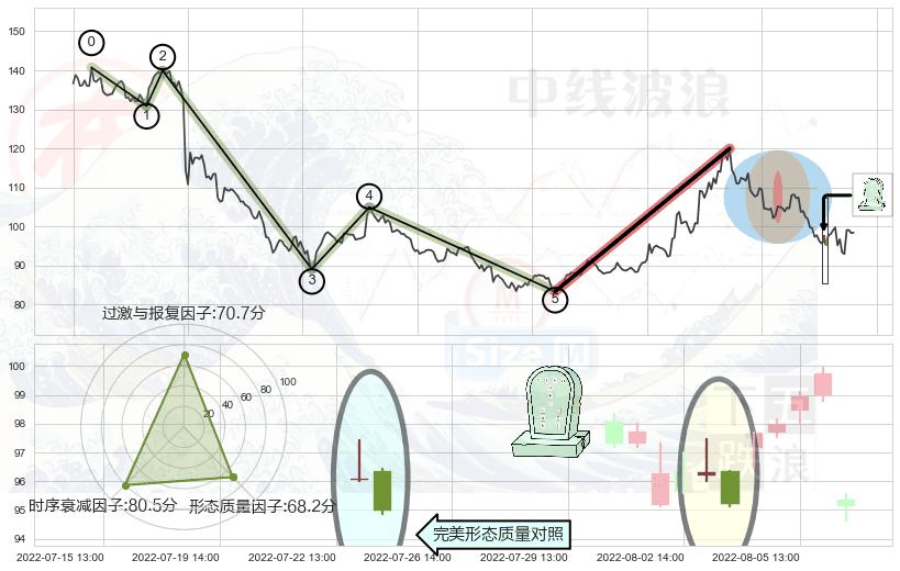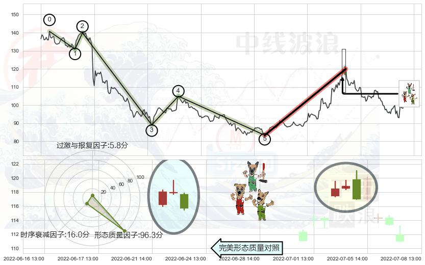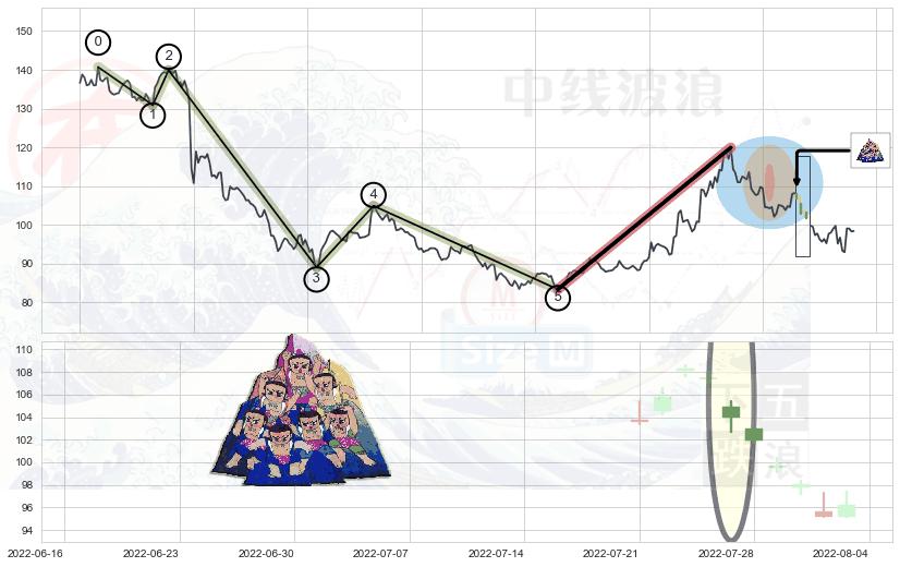 ➢ 🕰 价格走势在2022-07-06 14:00:00至2022-07-08 14:00:00期间形成高档五阴线,残存影响值:-1.36