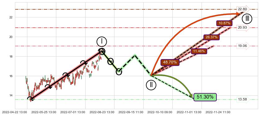 ➢ 循环浪继续向上【最高】位置(12-07:13, 22.80),匹配聚类样本比例22.33%, 可能性概率10.87%