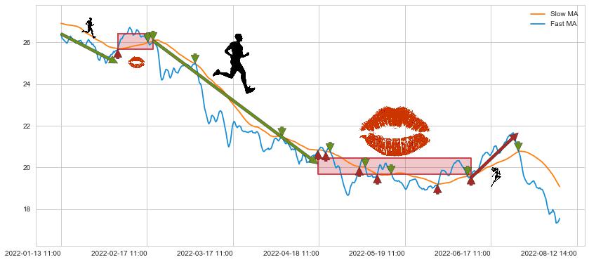02-18 14:00至04-18 10:00 慢线与快线呈空头排列, 慢线与快线接触少,无缠绕