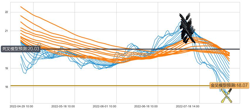 ➢ 55小时均线于(07-07 14:00: 20.76)形成【死叉】基于【死叉历史模型】预测死叉后最低波谷价格: 19.76, 死叉后最低价格17.13,已经下跌超出预测最低波谷价格, 预期反弹