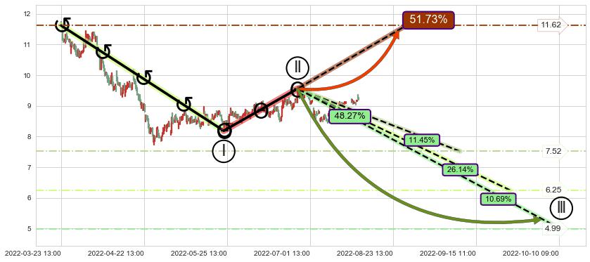 ♘ 支撑价格位8.33,可信任强度99.00%,距离最后交易2022-08-12 14:00形成的收盘价格9.20相差 -9.44%