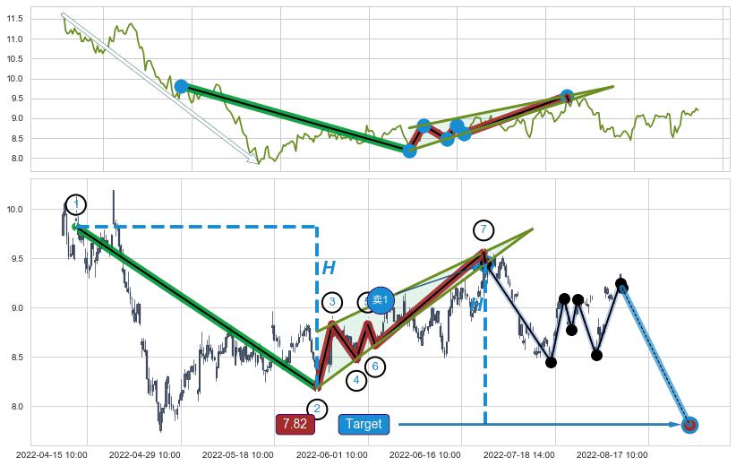 ➢ AI预测: 假定反转继续,第❸价格目标位置(08-23:14, 7.85)