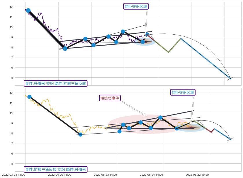 ➣ 扩散三角反转:猜想临近关键支撑位突破点 → 临近拐点下跌 → 风险信号 → 大趋势均值回复