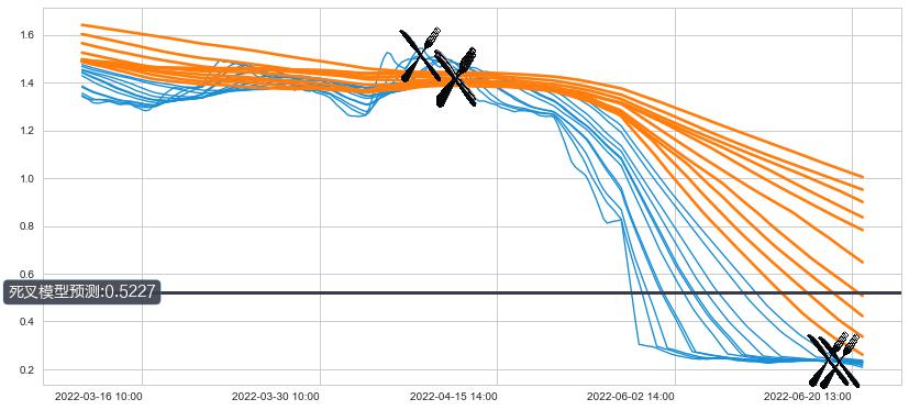 ➣ 10小时均线于(06-16 13:00: 0.238000)形成【死叉】基于【死叉历史模型】预测死叉后最低波谷价格: 0.211520, 死叉后最低价格0.200000,已经下跌超出预测最低波谷价格, 预期反弹