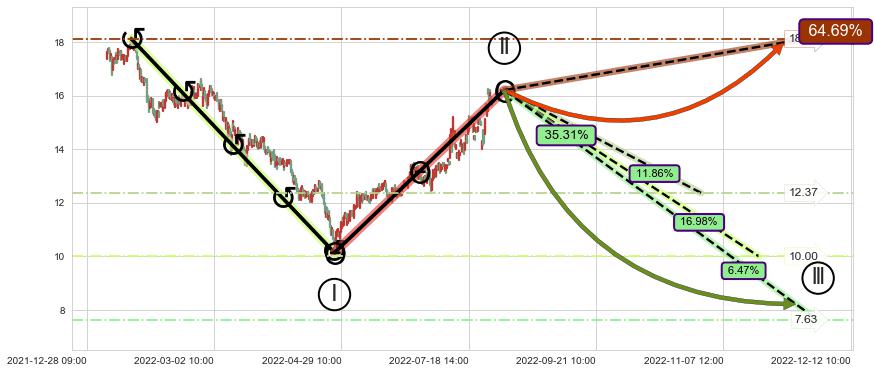 ♘ 支撑价格位15.00,可信任强度66.85%,距离最后交易2022-08-12 14:00形成的收盘价格15.67相差 -4.30%