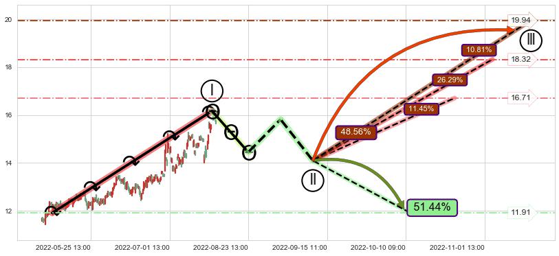 ➢ 循环浪继续向上【最低】位置(10-24:11, 16.71),匹配聚类样本比例23.59%, 可能性概率11.45%