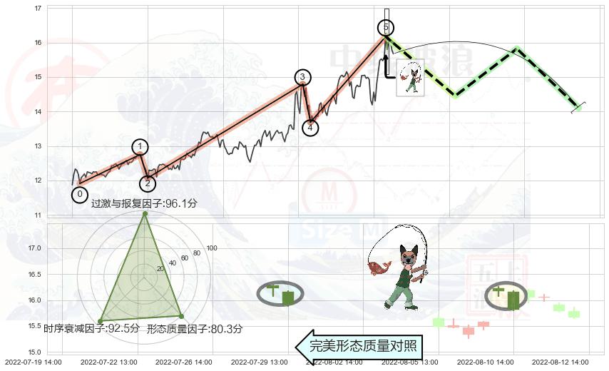 ➢ 🕰 价格走势在2022-07-26 00:00:00至2022-08-01 00:00:00期间形成高档五阴线,残存影响值:-1.15