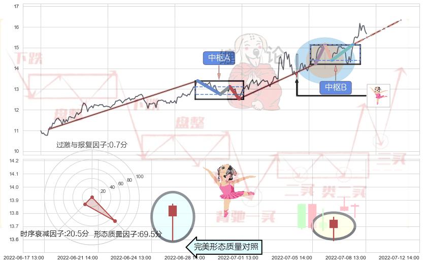 从2022-06-30 14:00至2022-07-21 13:00,共包含30个小时,阶段股价上涨2.81%,阶段股价变动位移路程比: 1 : 13