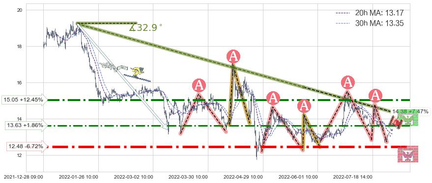 ♞ 20小时均线:13.17,30小时均线:13.35→ 快线<慢线