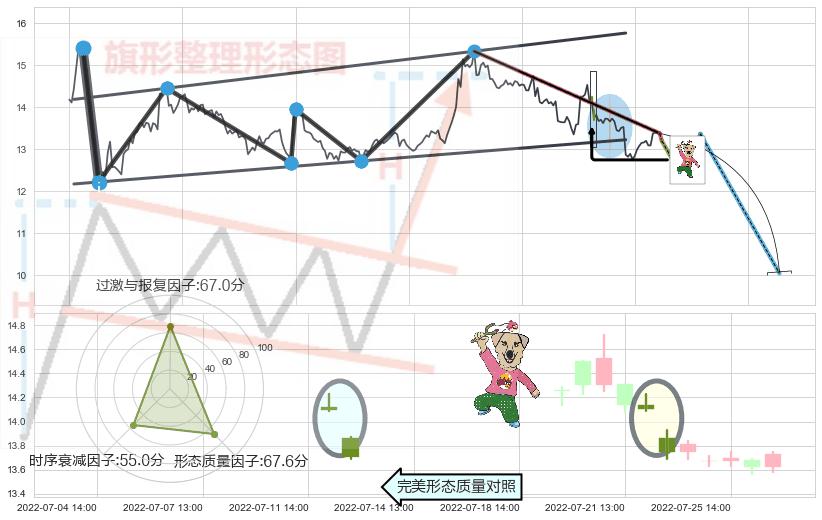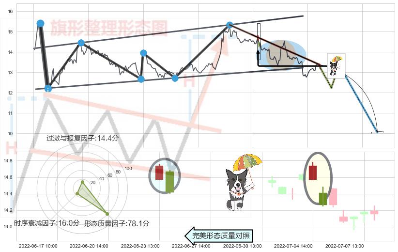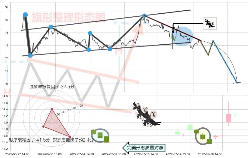 ➢ 射击之星形态 🔜 升旗形临近支撑猜想转换阻力下跌 综合量化分数:38.84 【偏空】