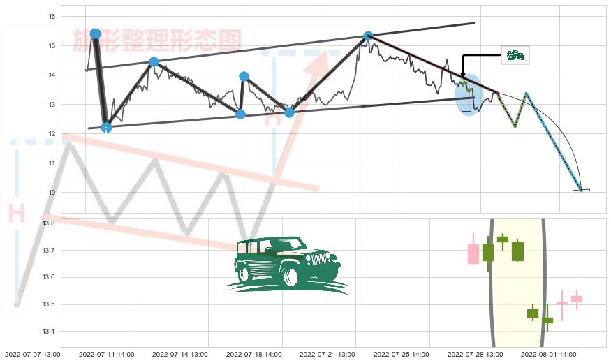 ➢ 【仅预测突破】最后价格:13.38与预测突破价格:13.22→【空间临近】后续最小【整理】第一目标价格→(08-25:13: 10.04 )