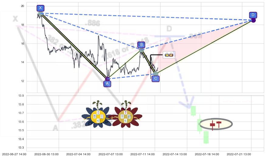 ➣ 谐波蝙蝠:猜想c点下沉接近b点后强支撑来临拉升上涨(均值回复)