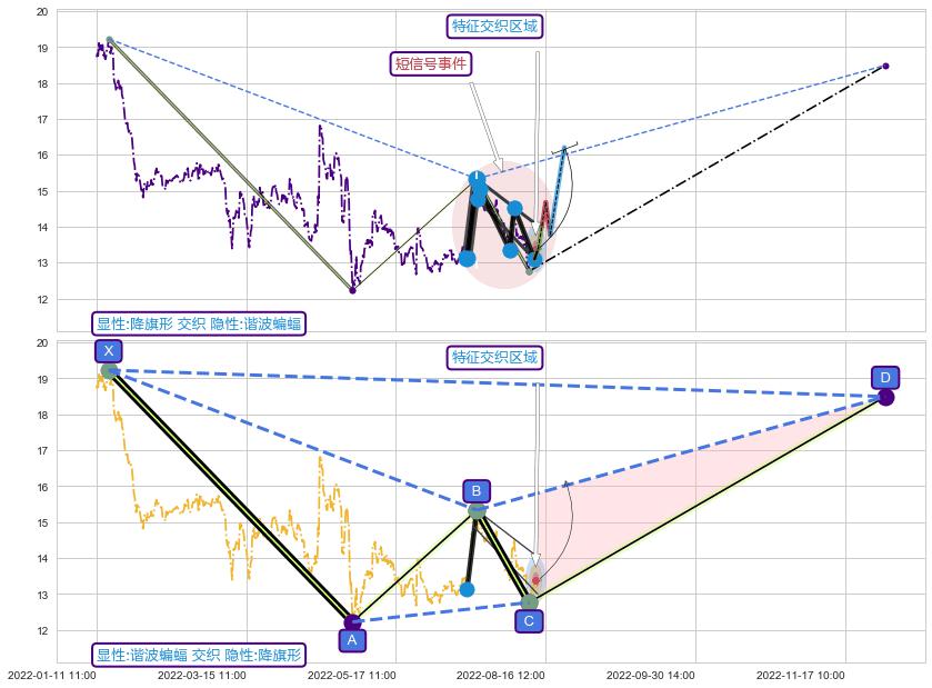 ➢ 降旗形属【短级别信号事件】谐波蝙蝠属【长级别信号事件】长短周期组合信号事件, 短长事件长度比16.70%