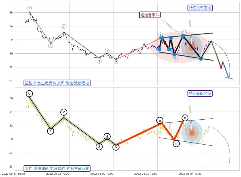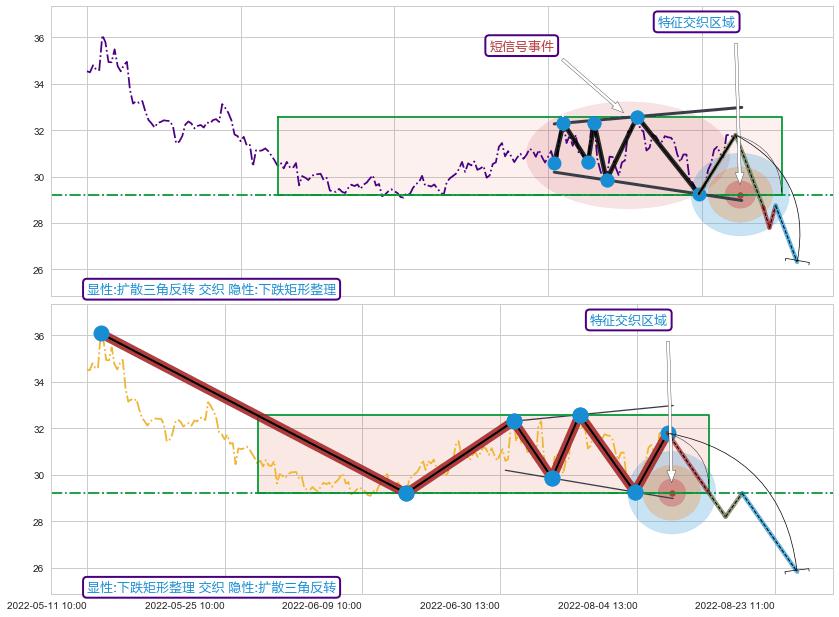 ➢ 扩散三角反转属【短级别信号事件】下跌矩形整理属【长级别信号事件】长短周期组合信号事件, 短长事件长度比23.19%