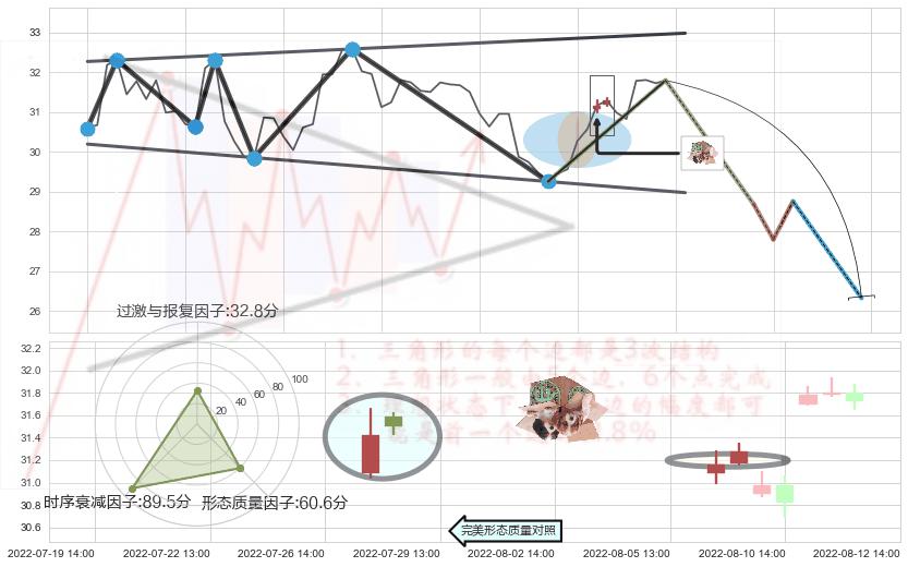 ➢ 🕰 价格走势在2022-08-09 13:00:00至2022-08-09 14:00:00期间形成顶部尽头线(下山虎),残存影响值:-4.69