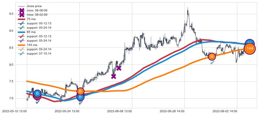 ➣ 75小时均线于(08-05 14:00: 8.60)形成【金叉】基于【金叉历史模型】预测金叉后最高波峰价格: 9.23, 金叉后最高价格9.12,尚未达到预测最高波峰价格, 预期继续上涨