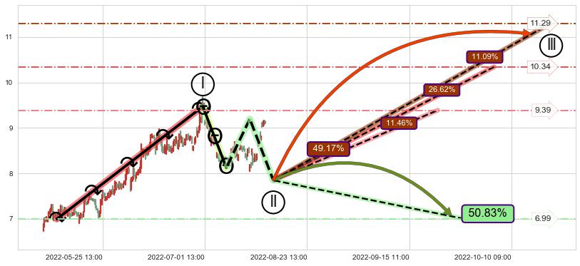 ➢ 循环浪继续向上【最低】位置(09-22:09, 9.39),匹配聚类样本比例23.31%, 可能性概率11.46%