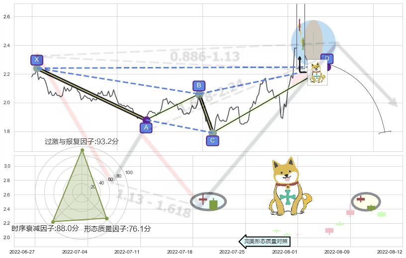 ♘ 支撑价格位1.9005,可信任强度94.11%,距离最后交易2022-08-12 14:00形成的收盘价格2.300相差 -17.37%