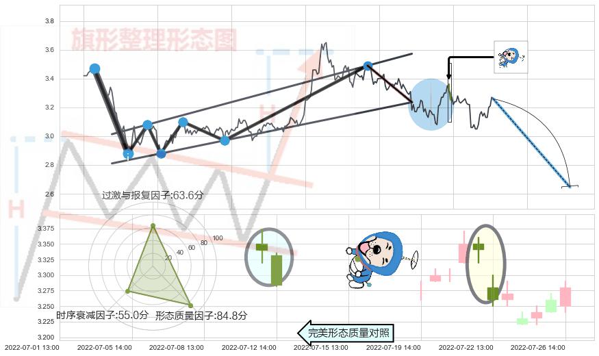 ➢ 下跌螺旋桨 🔜 升旗形支撑破位转换阻力下跌 综合量化分数:45.03 【偏空】