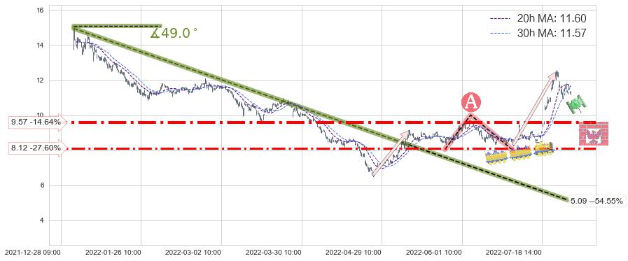 ♘ 支撑价格位9.57,可信任强度80.12%,距离最后交易2022-08-12 14:00形成的收盘价格11.21相差 -14.64%