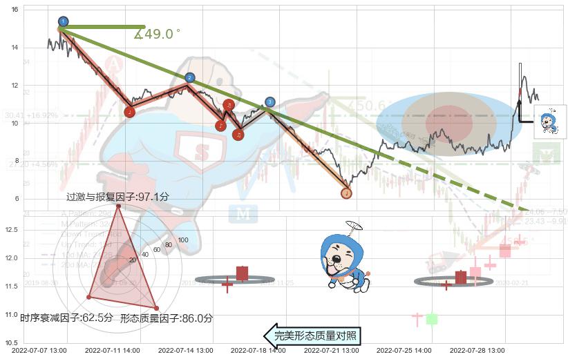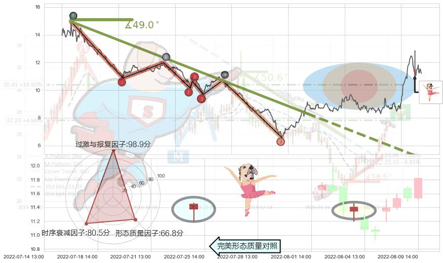 从2021-12-31 10:00至2022-05-12 14:00,共包含418个小时,阶段股价下跌-49.69%,阶段股价变动位移路程比: 1 : 7,下跌趋势角度: 49.0