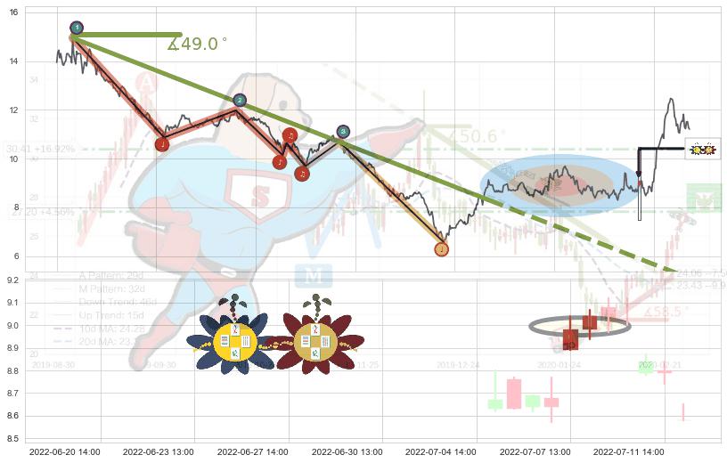 ➣ 2021-12-31 10:00-2022-05-12 14:00下跌趋势存在反转上涨[机会],其原下跌趋势的阻力位(5.09)已被突破[强支撑信号],原下跌趋势角度: 49.0˚
