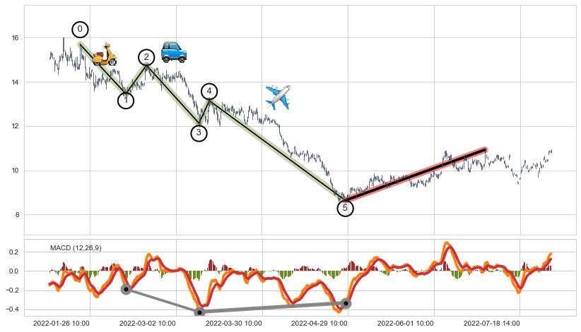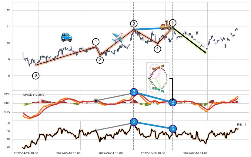 ➣ 波浪理论:猜想达到c点后小反弹终止反转下跌 → 下跌 → 【拐点】临近 → 阶段均值回复结束后继续大周期趋势跟踪