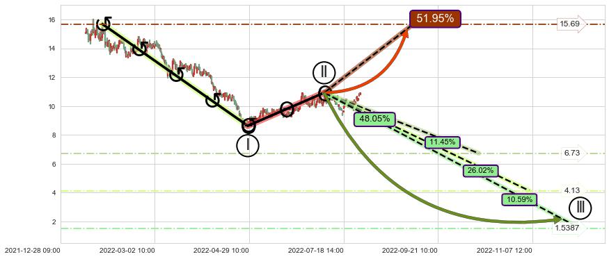 ➢ 循环浪继续向下【最低】位置(11-30:11, 1.5387),匹配聚类样本比例22.03%, 可能性概率10.59%