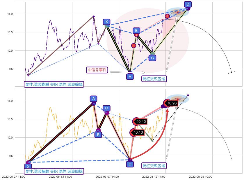 ➢ 未完成【蝴蝶】形态起点X: 06-29:13, 已到达C点: 08-02:14, 预测最终D点: 08-18:14, 共85交易小时