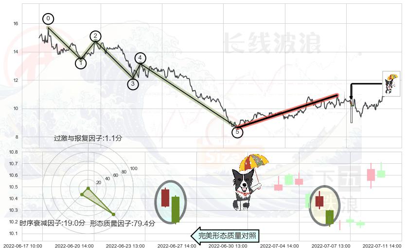 ➢ 🕰 价格走势在2022-07-12 13:00:00至2022-07-12 13:00:00期间形成看涨(低位)倒锤头线,残存影响值:2.41