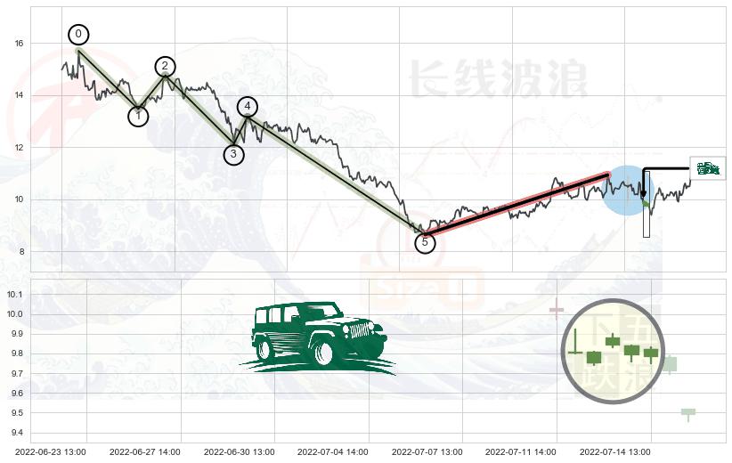 ➣ 波浪理论:猜想击穿突破c点后继续上涨 → 上涨 → 机会信号 → 小趋势跟踪
