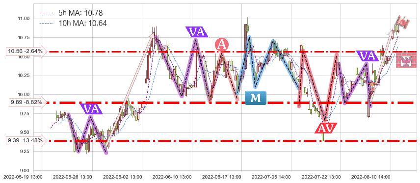 ♞ 5小时均线:10.78,10小时均线:10.64→ 快线>慢线