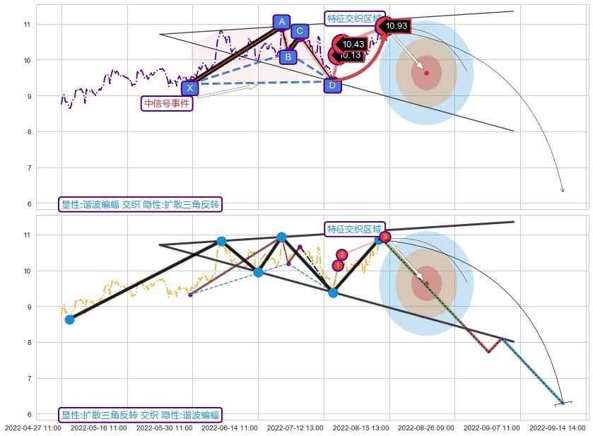 ➢ 谐波蝙蝠属【中级别信号事件】扩散三角反转属【长级别信号事件】中长周期组合信号事件,中长事件长度比45.83%